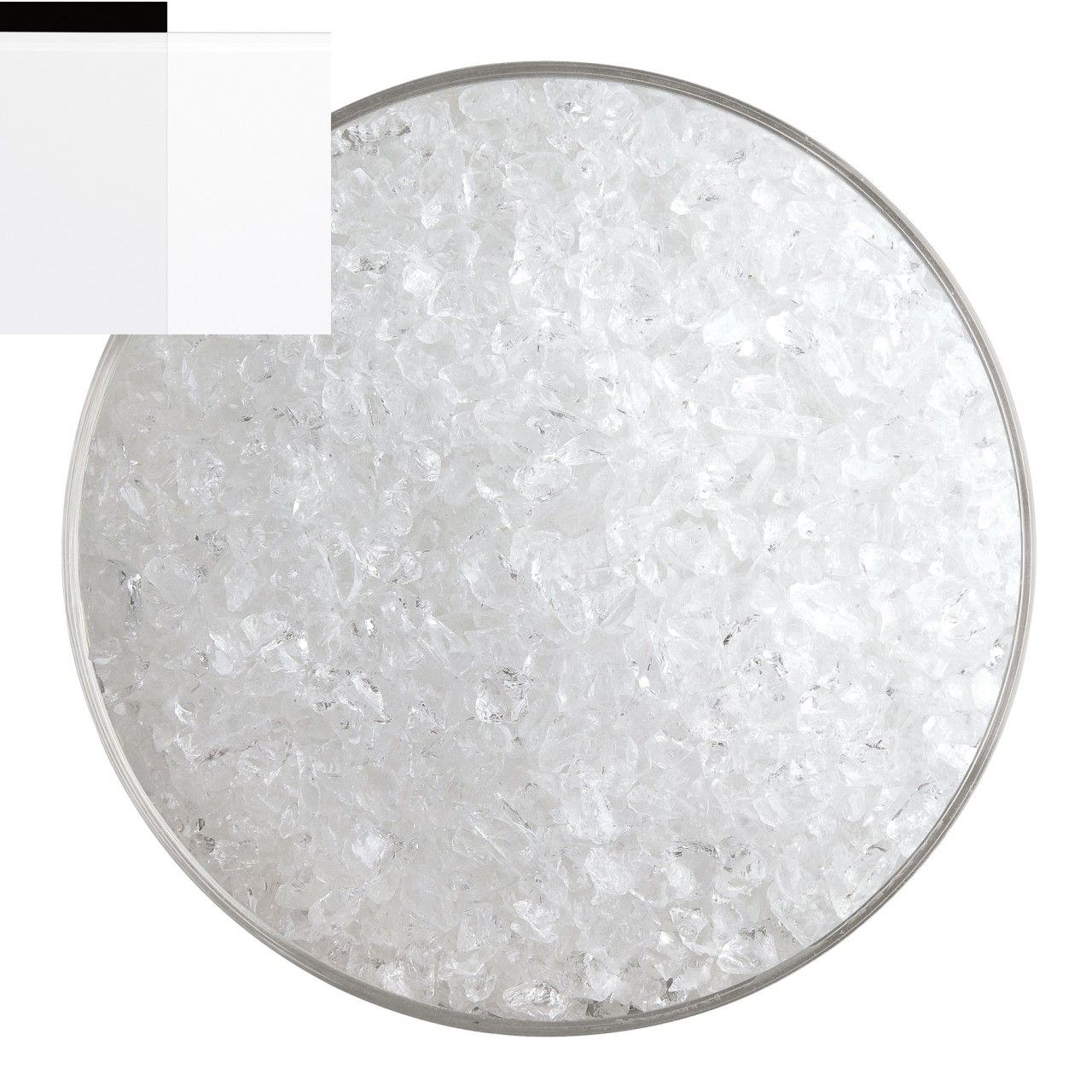 Farbe: Opalweiß, schmilzt zu einem sehr durchscheinenden Weiß. Dieses Glas sorgt für einen spannenden Effekt als Überzug.