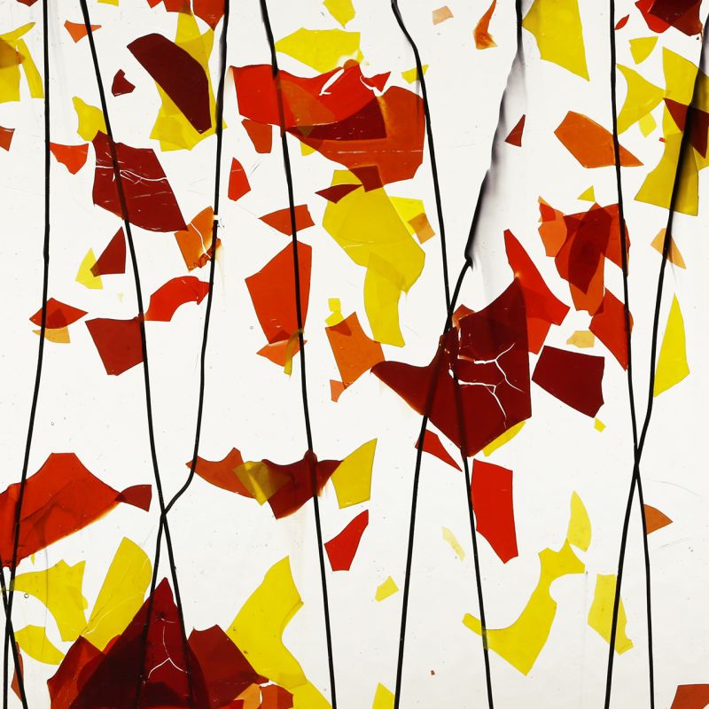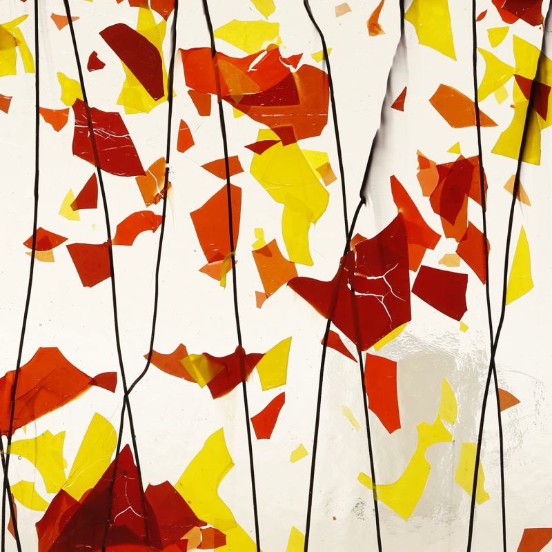 Farbe: „Fracture – Streamers“ transparent klar mit Konfetti gelb orange rot / Stringers schwarz