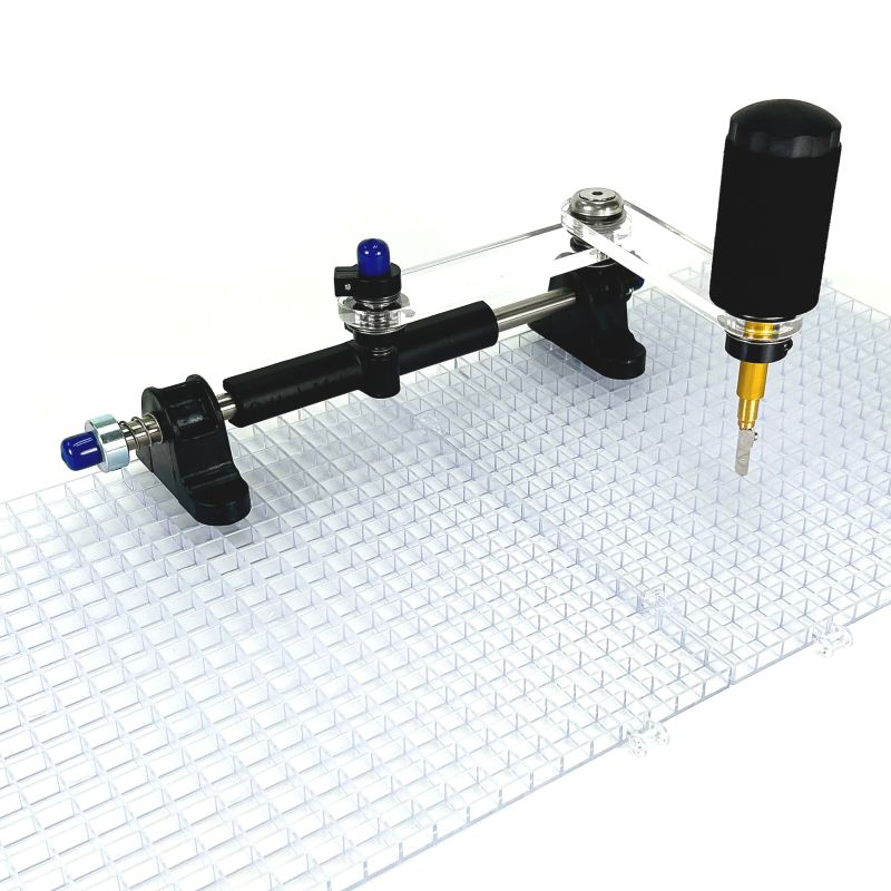 Das Easy-Glide-System hält den Schneidkopf in einem konstanten Winkel von 90º zum Glas, wodurch unschöne Brüche praktisch ausgeschlossen sind. Schnelle, einfache Installation für Rechts- oder Linkshänder. Der 11-Zoll-Schnittarm aus klarem Lexan kann eine gerade Linie von bis zu 22 Zoll Länge schneiden und lässt sich bei Nichtgebrauch zur Seite schwenken. Kann einfach in einem Karton mit den Maßen 13 x 13 x 3 Zoll versandt und aufbewahrt werden.