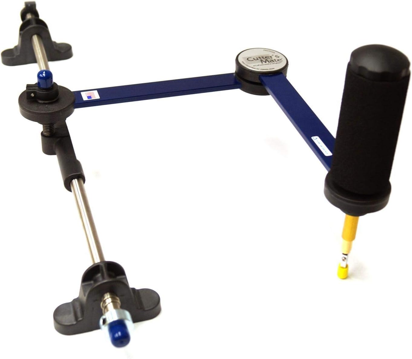 Sie führen den Cutter's Mate Glasschneider mühelos über das Glas, während Sie automatisch einen konstanten Winkel von 90 Grad zur Glasoberfläche einhalten. Durch den richtigen Schnittwinkel lässt sich das Glas ideal brechen – genau wie bei vollautomatischen Glasschneidetischen. Das Prinzip ist dasselbe, nur dass Sie beim Cutter's Mate-System den Schneider noch von Hand führen müssen… Der Schneidkopf kann um 360 Grad gedreht werden, sodass Sie jede gewünschte Form schneiden können.