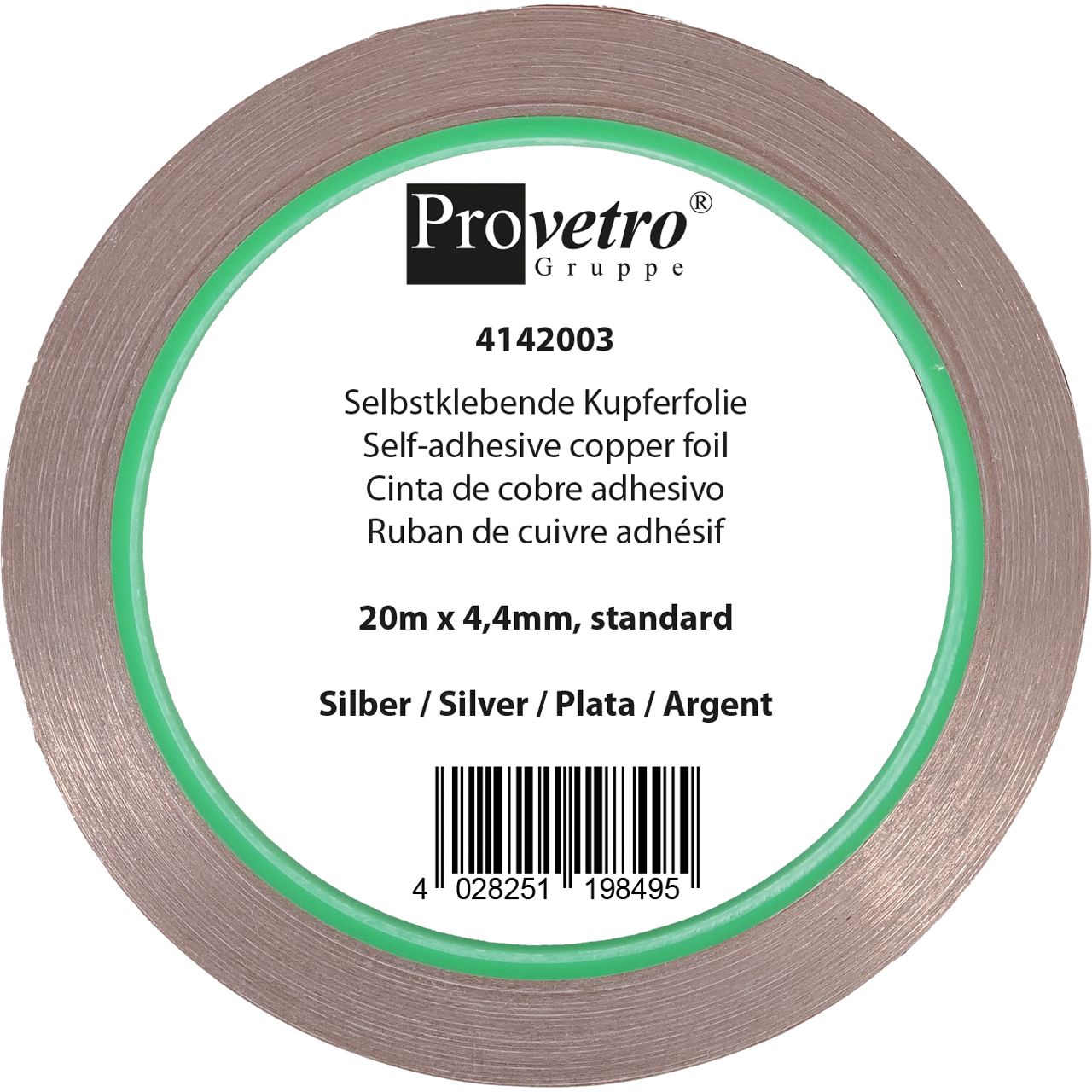 PROVETRO Kupferfolie Silber 20 m x 4,4 mm