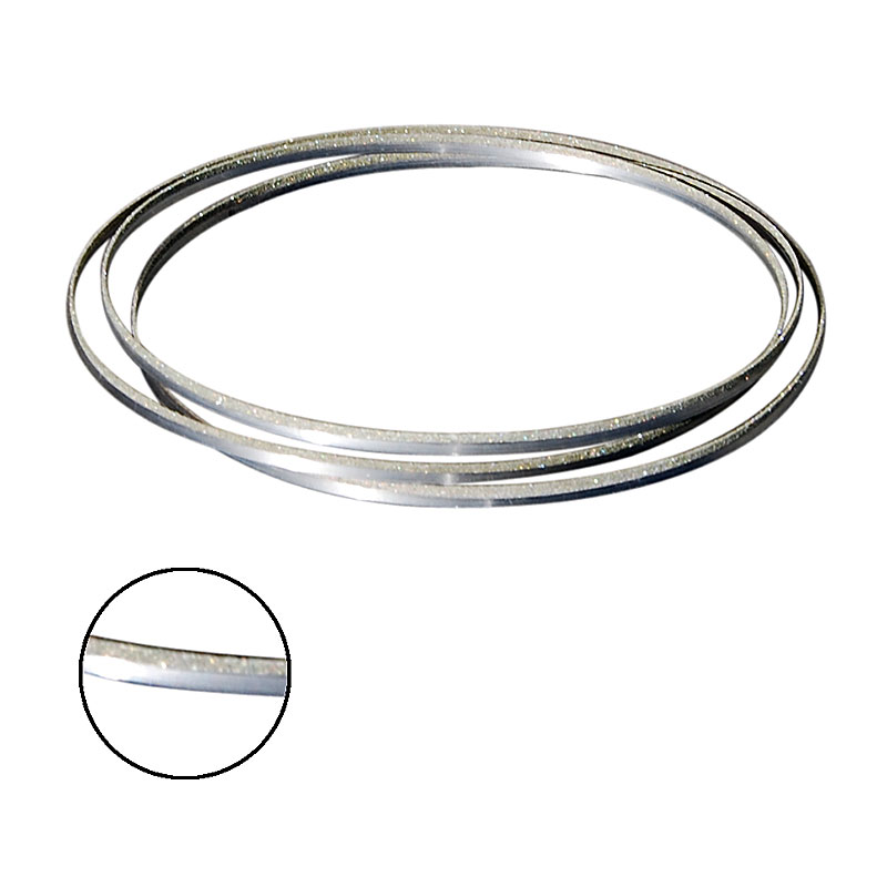 Dieses Diamantband-Sägeblatt aus Edelstahl eignet sich zum Nassschneiden von Glas, Stein, Halbedelsteinen, Fliesen, Keramik, Porzellan, Marmor, Granit, Silizium, Kunststoff, Glasfaser, Faserplatten, Leder, Muscheln und lebenden Korallen. Das Edelstahlblatt ist mit feinen Diamantkristallen beschichtet.